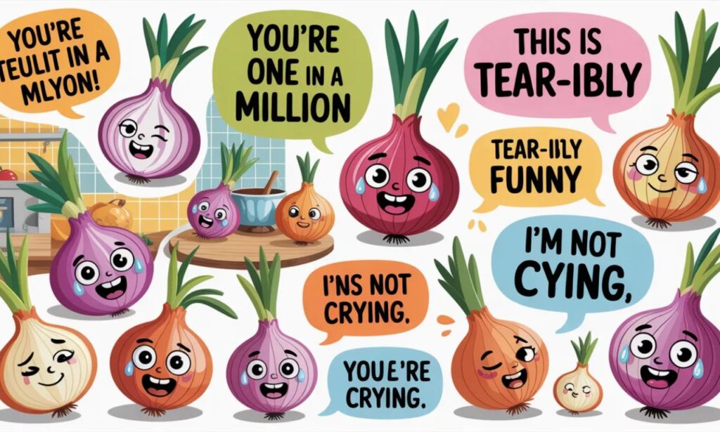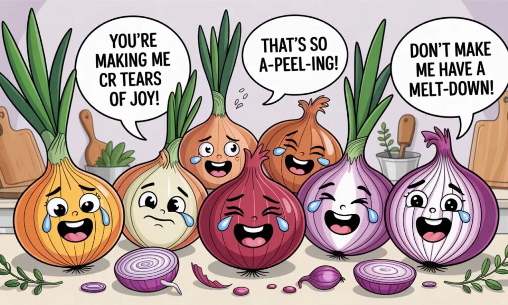 Onions are not just for cooking—they’re perfect for cracking jokes too. From silly one-liners to clever wordplay, onion puns always bring layers of laughter. Whether you love sweet jokes or sharp humor, there’s something here for everyone.
